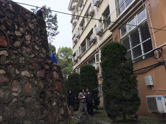 北二园区所有楼栋靠近路面的一楼墙面和玻璃都是灰蒙蒙的,原有的颜色不再夺目,这些地方的清洗是公寓部保洁员的一大难点,一是公寓部员工每日会花更多的时间和精力关注楼内的卫生环境和学生的动态,对于公寓的外观有所忽视;二是楼梯间的玻璃都密封无法打开清洗,积年累月,有了很厚的灰尘和蜘蛛网影响美观。在游泳馆运行服务部、工程设备管理服务部和校园管理服务部的大力支持下,公寓服务部克服了此项保洁难点,将每个角落冲冲洗洗刷刷。可惜天公不作美,下起了雨,尽管这样,也挡不住公寓部保洁员的热情,她们穿上雨衣继续分工合作,拿水枪喷射、清扫墙上的青苔,移动机器设备,相互配合默契,齐心协力,只要水枪能喷到的范围,都尽力洗到最干净。在18栋至23栋之间联廊上有一排玻璃密封的窗户,外面布满蜘蛛网,用高压水枪对着玻璃进行冲洗清洁,经过几个小时的冲洗与清洁,墙面、玻璃、空调外机等,都焕然一新,恢复它原有的颜色。
