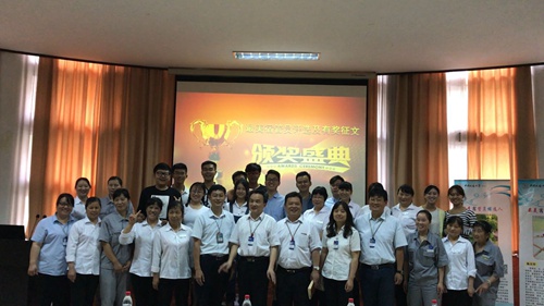 在全体获奖的公寓工作人员、学生与嘉宾的合影中,公寓服务部“最美宿管员及有奖征文”颁奖仪式圆满成功。