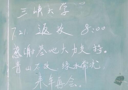 基地员工们的努力和付出,师生们看在眼里,也记在了心上,每一批实习师生离站时,都会在黑板上留下一些感人的话语,“感谢基地全体员工的大力支持和帮助!”、“感谢基地大力支持,青山不改,绿水常流,来年再会!”“感谢基地全体职工!”一句句真挚的话语,如同一缕缕和煦的春风,吹进了我们的心田,带给我们无限感动,这就是后勤服务的魅力!