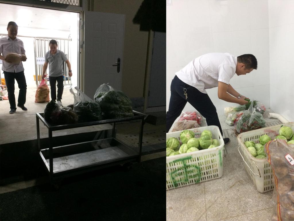 凌晨5点,当大多数人还在梦乡之时,食堂的物资就已经运送到集中点并开始紧张的装卸和验收了。搬运、开袋检查、称重、运送到食堂,整个验收过程有条不紊、忙而不乱。食堂验收人员和采购员仔细清点,认真把关,对所有物资严格按照验收标准检查质量,核对数量,确保质量达标、数量准确。