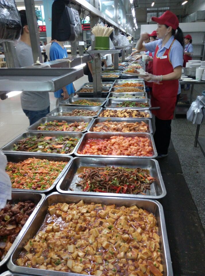 今年开学以来,北区食堂全体员工以全新的姿态迎接广大师生。在迎新期间,全体员工没有休息,每天坚守各自的岗位,为师生提供了不同档次的菜肴,有经济实惠大众快餐、营养套餐、盖浇饭,还有不同口味的营养汤;饮料窗口有各种美味的冷热饮品,并且每天保证有“一元″特价饮料售卖,营养丰富、物美价廉,满足了不同消费群体需求。红案班组每天就有五六十个品种的菜肴呈现在师生面前,顿时让同学老师们的味蕾大开。厨师们聊得最多的就是如何让师生吃出营养,吃出健康,员工在一起想办法,出点子,变花样,计划用料,精工细作,不断提高烹调技术,改善制作方法,做到色、香、味俱佳。厨师在不断提高技术水平的同时,服务员也不断加强服务意识,个个精神饱满,以热情周到服务于广大师生。