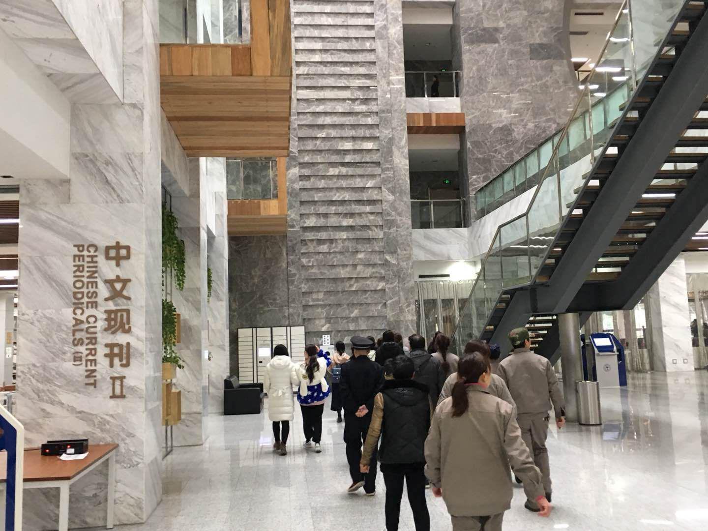在保证不打扰学生学习的前提下,新员工以最快的速度轻声地参观了图书馆的一楼大厅和二楼的展示区。