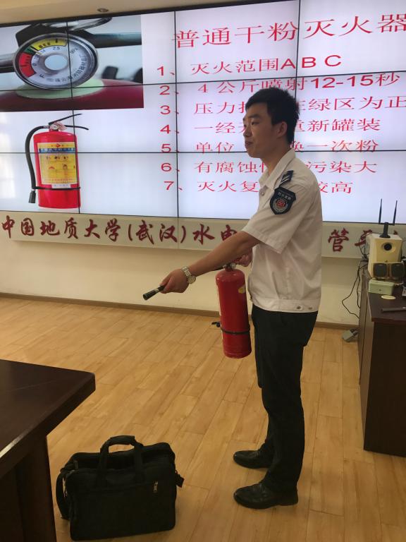 田教官分别从消防安全的重要性、火险分类,以及针对不同类型的火险如何进行有效的灭火、如何使用消防设备几个方面进行了讲解。通过一个个触目惊心的案例,大家了解到消防安全的重要性,并通过观摩体验消防设备学习消防器材的使用方法。