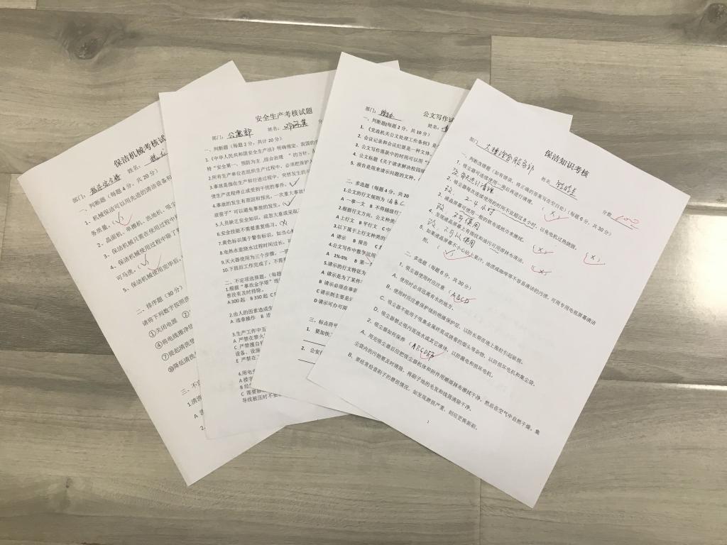 物业服务中心2018年上半年开展家具类保养、公文写作、保洁机械、安全生产知识等培训课程共计29次,总时长约为48小时,培训总人数达675人次。7月,为检验培训质量,落实培训效果,物业服务中心针对各岗位开展了4场专项考核工作。