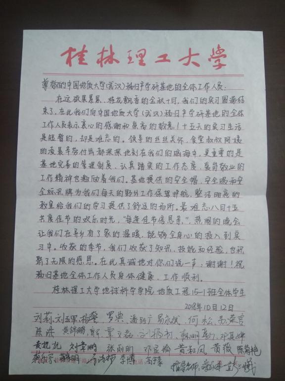 一封来自远方的信,寄托了桂林理工大学对秭归产学研基地全体员工深切的思念,短短在基地15天的实习生活,基地的服务让他们倍感贴心,深深留恋。读到这封信,我们的心也是暖暖的,秭归产学研基地会为广大学子提供更贴心,更优质的服务。