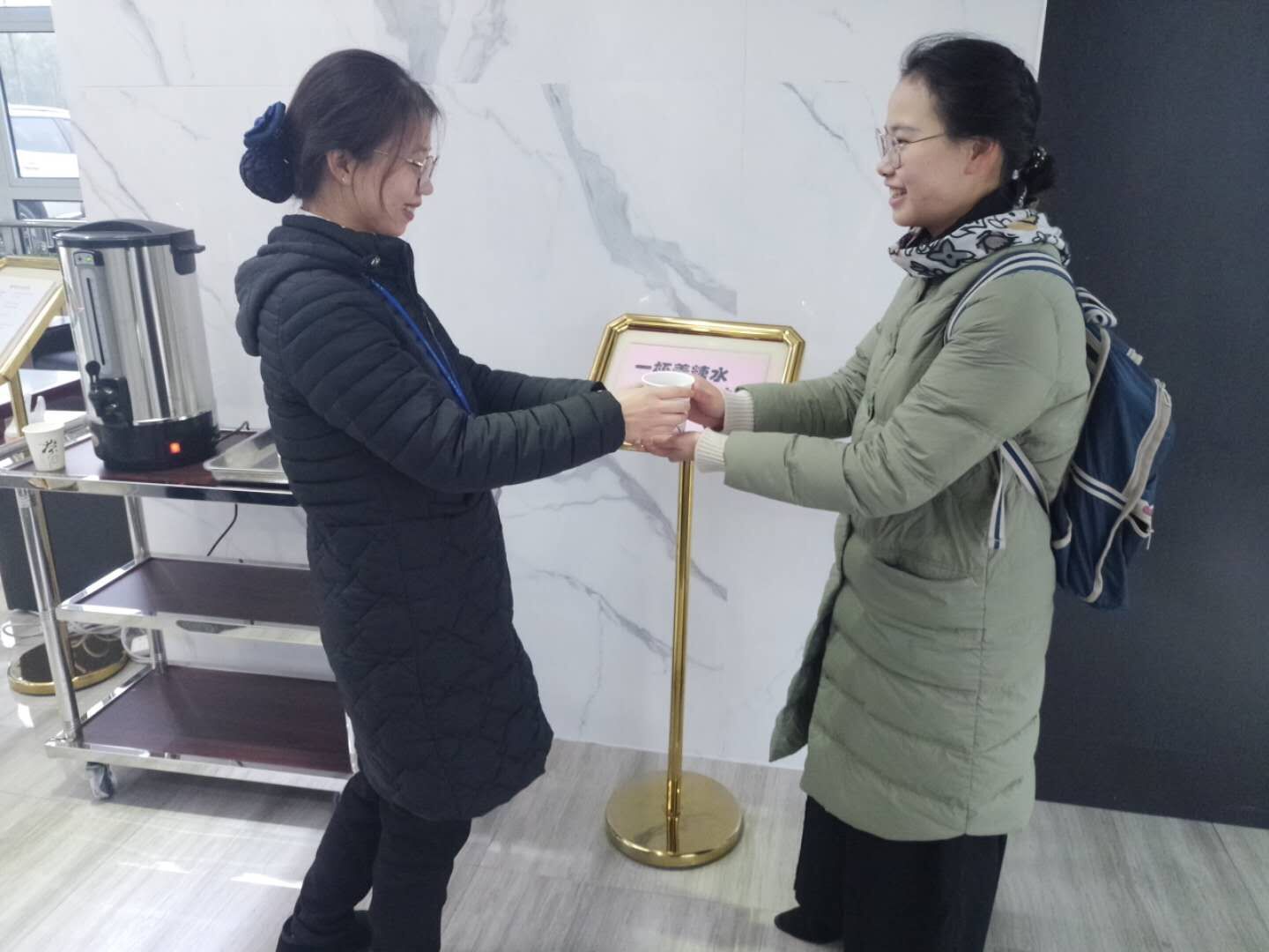 活动现场井然有序,气氛融洽。中心工作人员将一杯杯热气腾腾的姜茶送到师生手上,帮助他们驱散寒冷。同时,还嘱咐大家天气多变要及时增添衣物,注意防寒保暖和交通安全。一杯杯温暖的热饮,一句句贴心的问候,在寒冬的清晨给师生们的带来温暖。接到姜茶的老师和学生纷纷表示感谢,称不仅暖胃,更暖心,感觉校园充满了温暖气息。