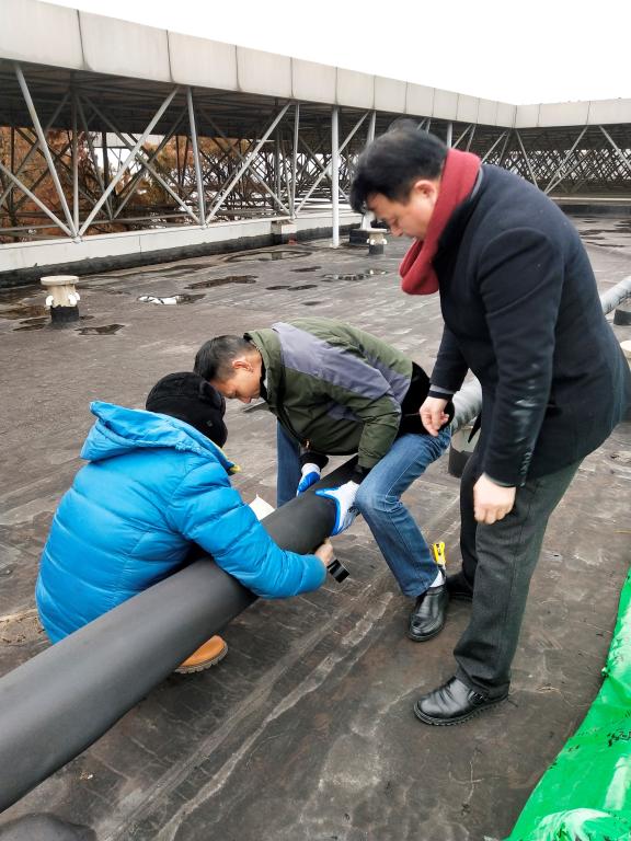 维修巡查人员冒着严寒,抓紧时间对各楼顶易冻的水管管路路、各类阀门仪表等重点部位加装保温措施,同时对有损坏的设备进行更换。