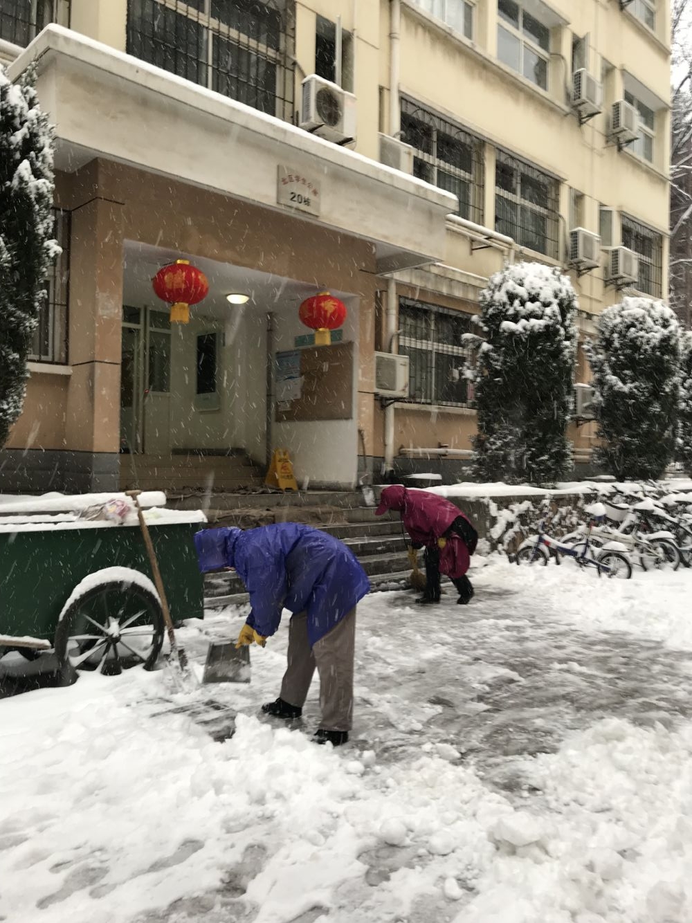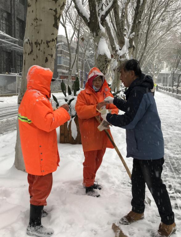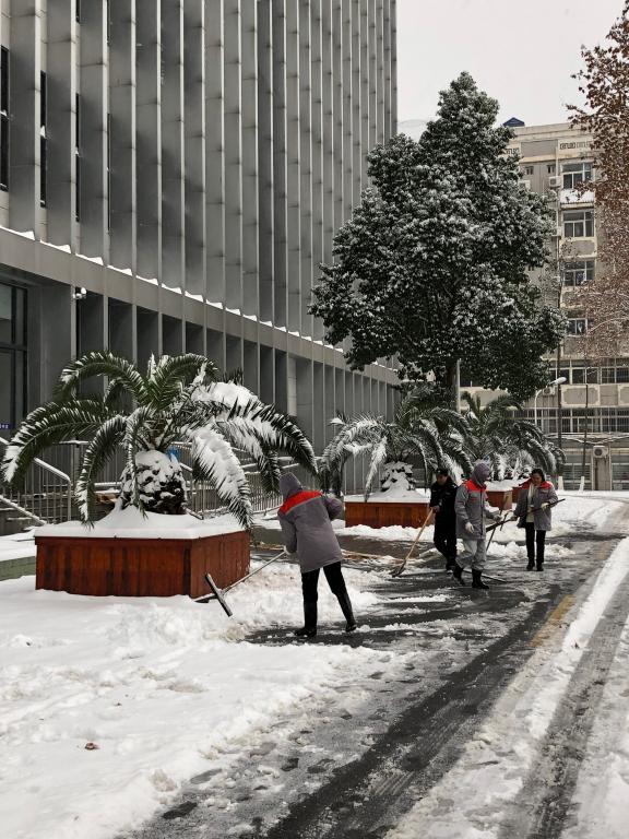 由于除雪工作从清晨5点就开始,很多员工都未吃早饭就投入到工作中,物业服务中心特意为员工送去早餐,让员工在寒冷的冬季感受到一丝温暖。大家顶着寒风、团结协作,不顾天气寒冷、地面湿滑,经过近6个小时的奋战,校园内主干道积雪已清除干净,为全校师生员工安全出行营造一个良好的环境,保障学校各项教学科研工作的正常进行。