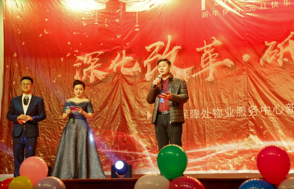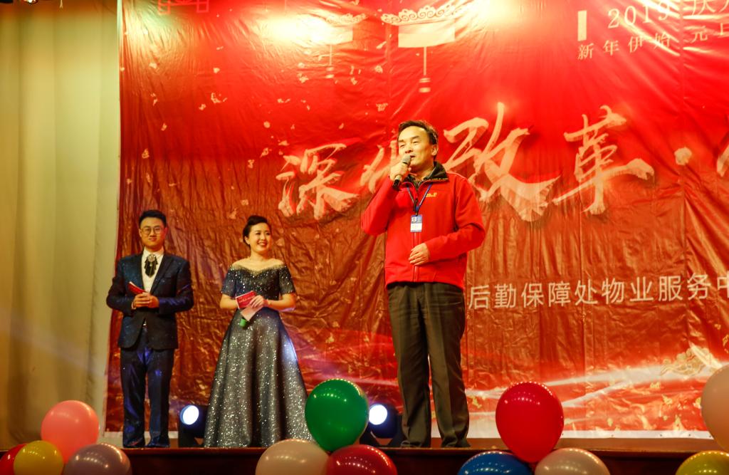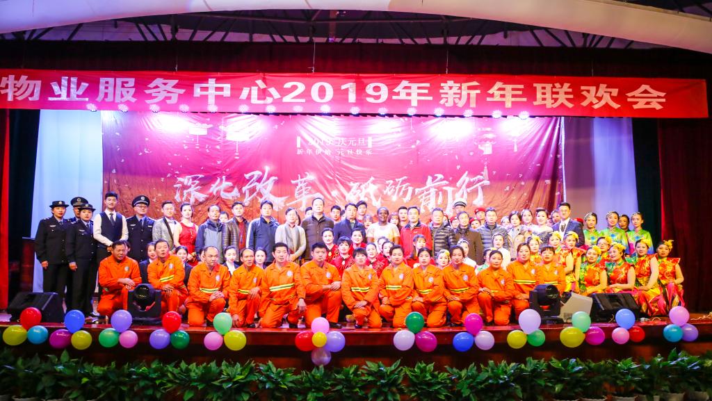 元月8日晚,物业服务中心庆祝改革开放40周年暨2019年新年联欢会在大学生活动中心隆重举行。后勤保障处处长王文起,后勤党委书记蔡楚元,后勤保障处副处长刘清华、郭敬印、王伟,劳动服务公司经理傅艾平,后勤保障处相关科室负责人及兄弟单位领导同仁与现场300多名观众一起观看演出。