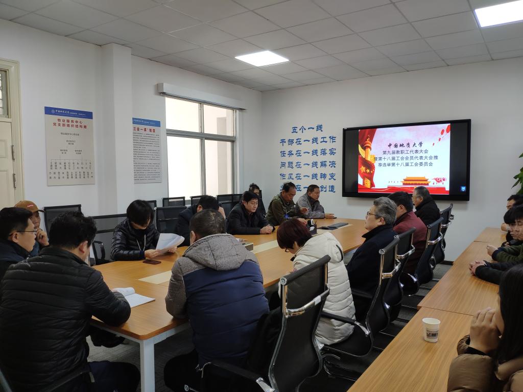 会上,首先由物业服务中心副主任徐莉同志宣读《关于选举中国地质大学(武汉)第九届教职工代表大会暨第十八届工会会员代表大会代表和推荐选举第十八届工会委员会(第九届教代会执行委员会)、经费审查委员会委员候选人的通知》。根据《通知》中提到“两代会”代表的组成及产生方法,冷书记组织到场的全体教职工进行公平、公正、公开的投票选举活动,最后推选了两名同志代表报后勤党委,后勤分工会资格审查。