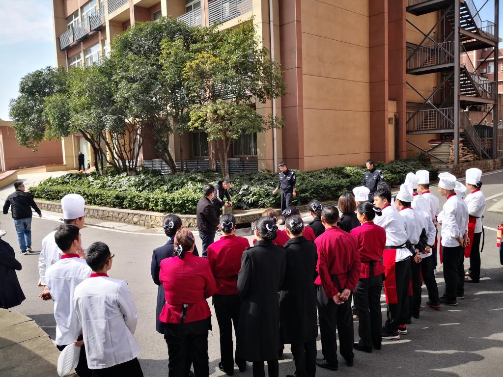 接待服务中心为提高员工预防火灾以及对火灾事故的应急处置能力,于3月12日下午2点,邀请保卫处消防科在悦宾楼门前开展了消防安全培训活动。震旦园餐厅20余名员工参加了此次培训,中心副主任杨扬出席了活动。