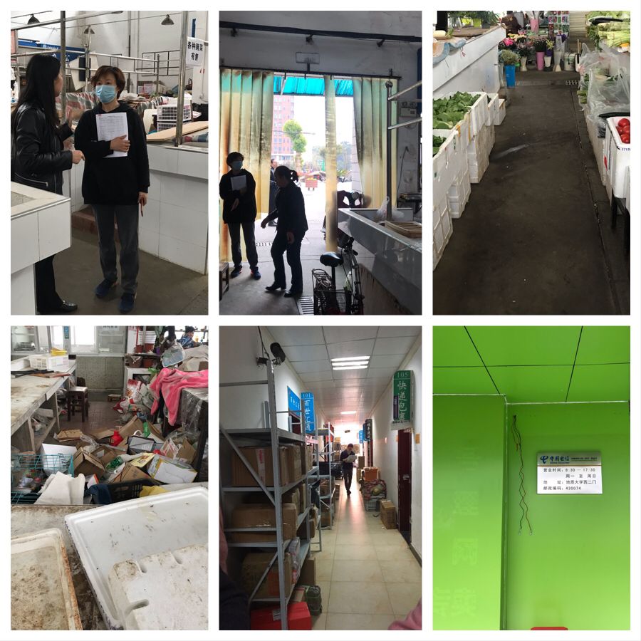 一组在检查过程中发现集贸市场存在水果店占道、菜场商户乱放空置纸盒、张贴广告、晾晒衣服等问题。对于集贸市场检查中存在的问题,公司高度重视,检查人员现场办公讨论整改意见,计划于下周一,由商务服务部利用一周时间对集贸市场进行专项整治工作。具体措施包括:1、下周一开始向菜场各商户下达清洁各自门前、门牌卫生、收置堆放的空纸盒、处理乱占道等问题的有关通知;2、下周二由公司聘请保洁人员对集贸市场内部环境进行专项保洁清理;3、对于卖场乱粘贴广告牌现象,公司计划再利用一周时间进行专项整治,由公司出资集中为商户设计统一门牌,并设置专门的广告粘贴处。