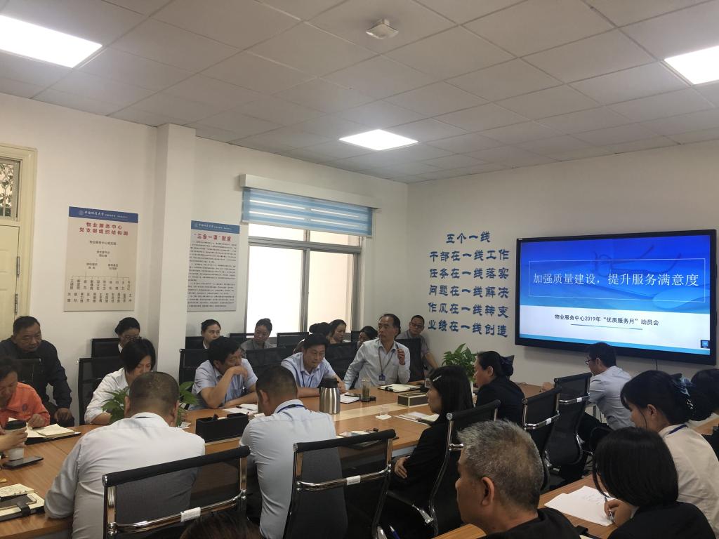 5月10日上午,物业服务中心在东区物业会议室召开“2019年优质服务月”活动动员大会,中心班子成员、各部门副经理以上人员、班组长及管培生参与了此次会议。会议由中心主任周志锋主持。
