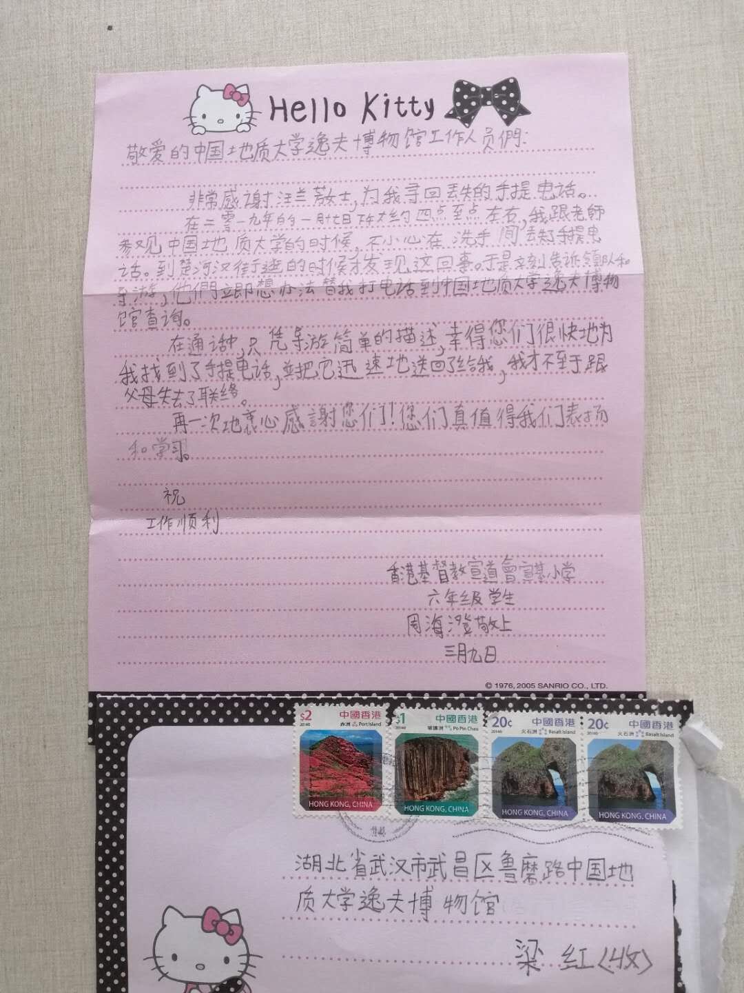 5月12日,中国地质大学逸夫博物馆收到一封来自香港新一届基督教宣道会宣基小学的感谢信。信中写了物业服务中心大楼综合服务部保洁员汪兰芳拾到手机主动想办法交还给失主。信中对汪兰芳诚信意识强,服务效率高,拾金不昧的高尚品德和热情的服务态度给予了充分肯定和赞扬。