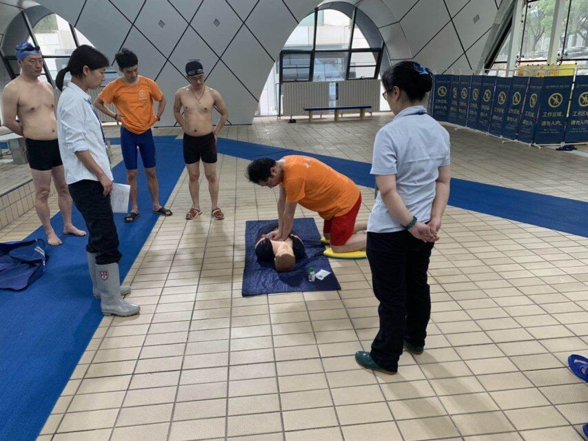 此次培训由2018年新进管培生王帅主讲,培训内容包括心肺复苏和拖带上岸技术,部门经理及救生、前台班组等人员参加。王帅首先详细讲解了心肺复苏的操作流程和关键要点,接着对馆内救生员讲解了拖带上岸技术的实际操作流程。最后,所有参与培训的员工逐一按照培训内容及操作流程,严谨地完成了实践操作的演练。
