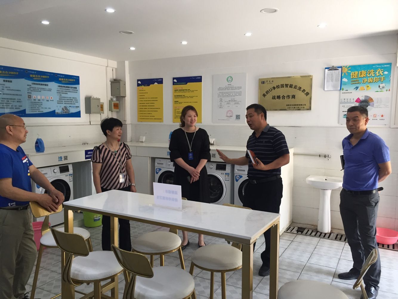 会后,于游一行在郭文娟等中心人员的带领下实地走访学生宿舍楼,详细了解了直饮水设备的工作原理、供水量的情况、相关设备技术指标、日常管理维护以及是否有噪音影响,废水处理等相关情况,并听取了校园直饮水工程建设情况的汇报。此外,于游一行还现场察看了63栋宿舍楼门厅及走廊走道的文化墙和3楼活动室、洗衣房等功能用房,以及自助打印机、自动售卖机等服务设备,对楼内的文化建设、保洁情况给予了高度赞扬。