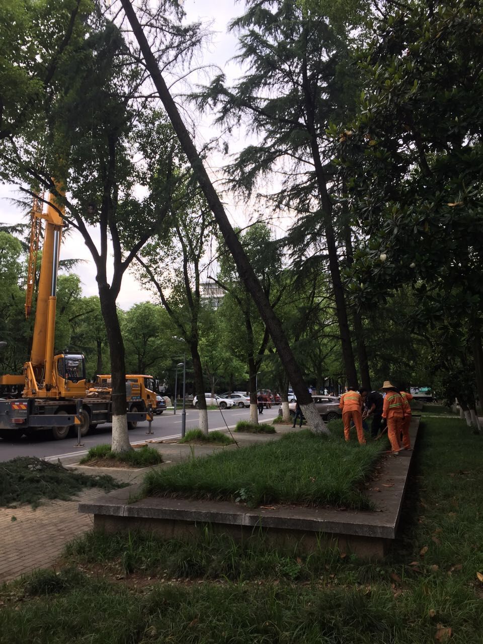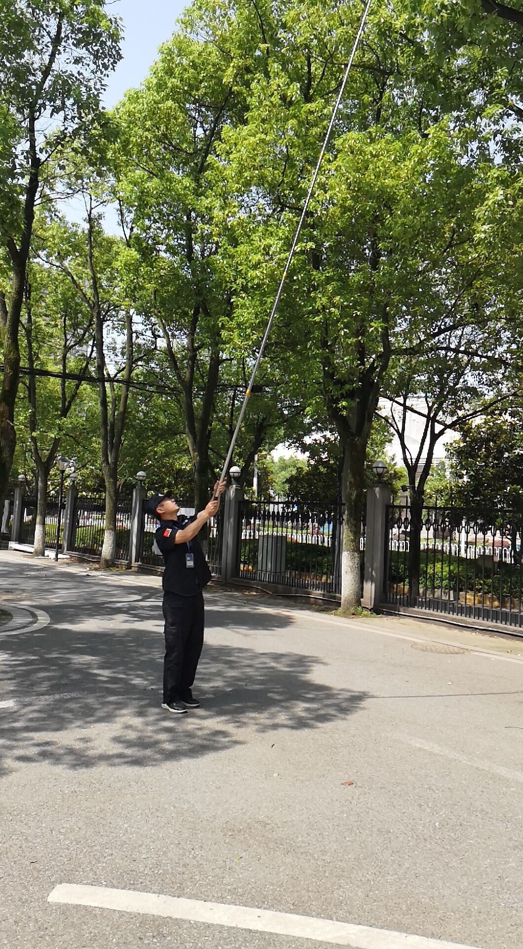 近期多雷雨大风天气,为保障校园师生安全,物业服务中心及时成立应急小分队对校园内所有树木进行严密排查,并对树木枯枝、下垂枝进行修剪去除。