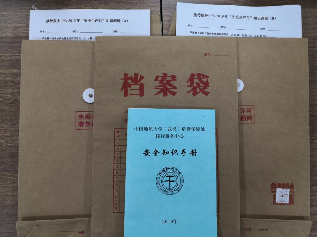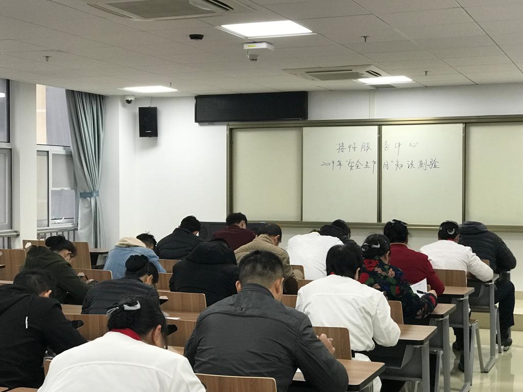 接待服务中心紧紧围绕今年安全生产月“防风险、除隐患、遏事故”活动主题,撰写了《中国地质大学(武汉)接待服务中心安全知识手册(2019年)》并下发给中心每一个员工,内容包括食品安全知识、消防安全知识、实用急救知识和各类应急流程图。各部门通过集中学习与自主学习相结合的形式开展安全知识培训,为了巩固学习效果,11月26日下午,接待服务中心在新综合楼B座教室组织员工开展2019年“安全生产月”知识测试,82名员工参加了本次考试。