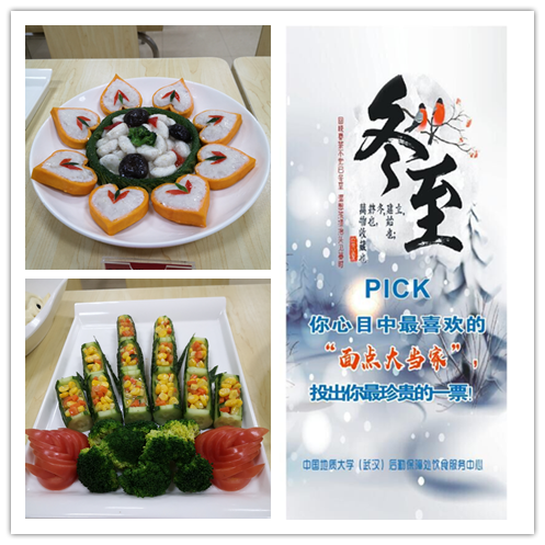 为弘扬传统饮食文化,倡导我校师生养成科学健康的饮食习惯,进一步推动校园文化建设,构建美味地大、营养地大、健康地大的饮食文化品牌。同时也为了加强师生与饮食服务中心的交流沟通,丰富员工文化生活,饮食服务中心于12月20日下午在学三食堂举办了以“暖暖冬至,爱满饮食”为主题的冬至校园饮食文化活动。活动邀请了后勤保障处机关党支部、我校学生代表、后勤管培生和我中心一线员工共同参与。