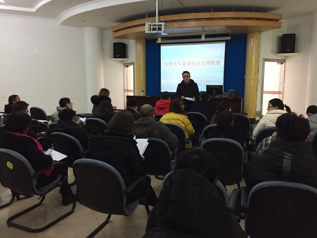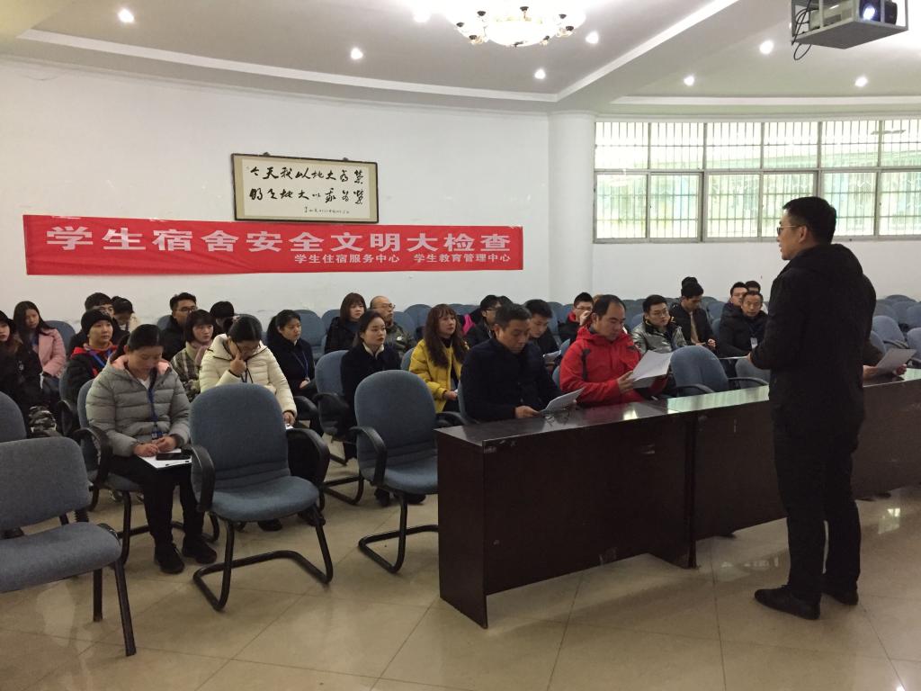为进一步加强学生公寓安全管理,提升学生安全防范意识,12月26日下午,学生住宿服务中心联合学生工作处学生教育管理中心,在全校范围内开展学生宿舍安全文明大检查。本次检查由后勤保障处副处长贺亚锋、学生住宿服务中心党支部书记郭文娟、学生教育管理中心主任李纪亮、学生住宿服务中心副主任张红兵带队,各部门负责人、各园区长及学园兼职辅导员、楼层长代表参加检查。