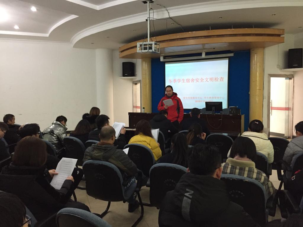 随后,全体检查人员分为10个小组,分别前往东区、西区、北区各学生公寓进行安全检查。在检查中,检查人员仔细查看学生宿舍生活设施、宿舍环境卫生以及安全用电等方面情况,认真排查宿舍内水电安全隐患,反复提醒学生加强安全防范意识,注意防火防盗、注意冬季出行安全等。