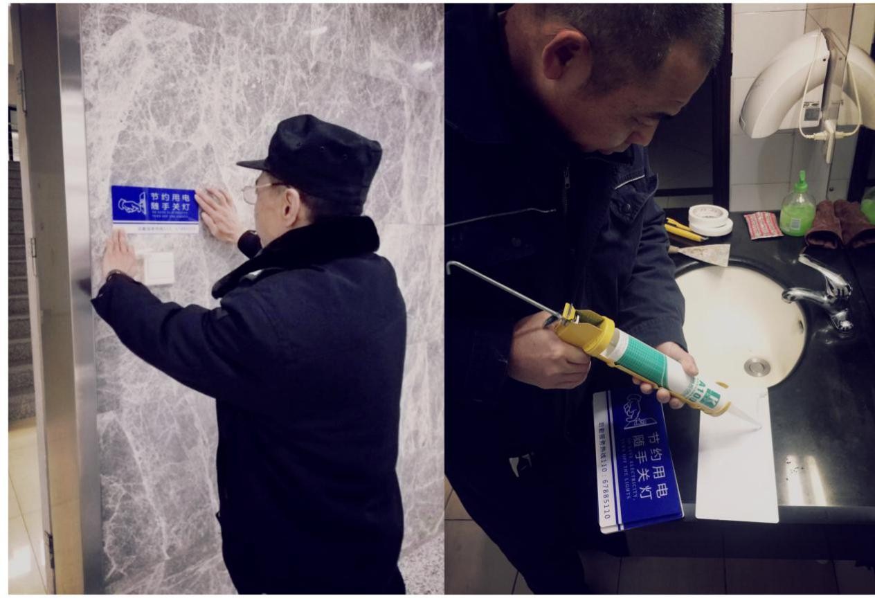 为培养师生们低碳生活的好习惯,杜绝长流水,常明灯等现象,响应中国地质大学(武汉)校长办公室关于做好冬季用电安全与节能专项工作的通知安排,在后勤保障处的安排部署下,水电与节能管理中心在校内部分公共建筑内开展了节能标识的张贴工作。