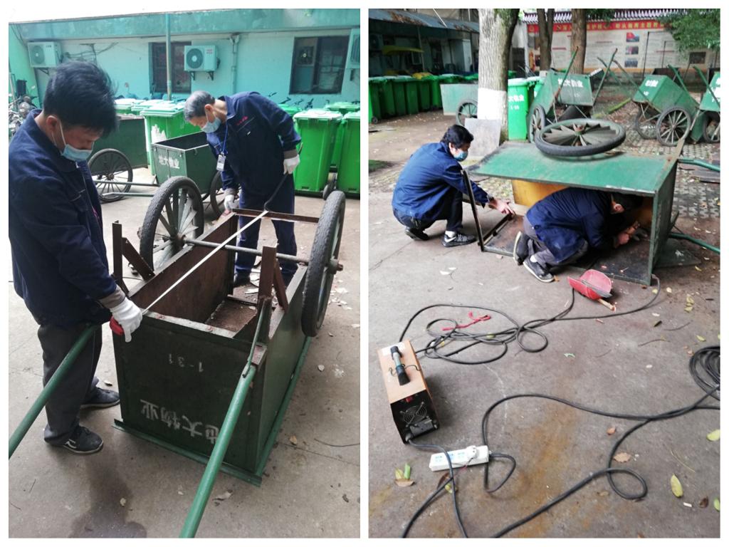 学生住宿服务中心开展铁皮垃圾车维修翻新工作