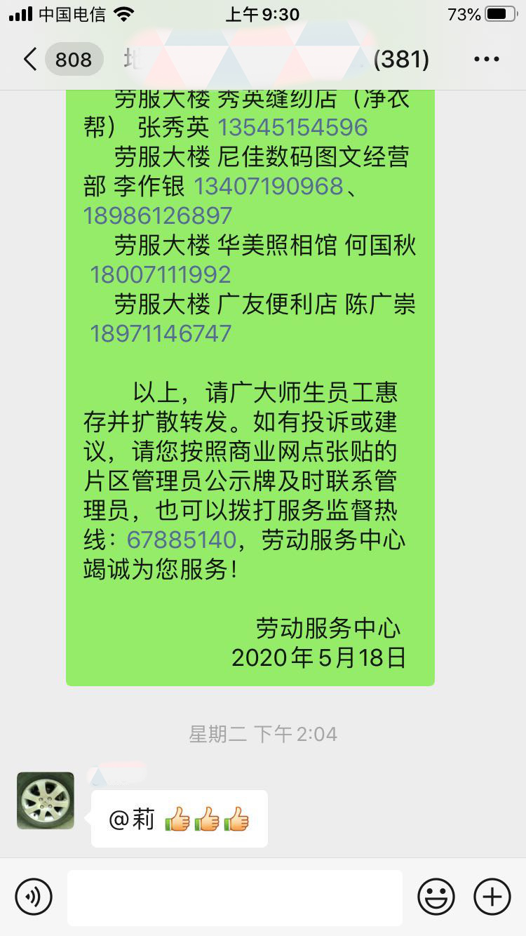 随着疫情的有效控制和复工复学工作的顺利开展,劳动服务中心为给广大师生提供更加便捷的生活基础服务,集中整合商业门面资源,利用互联网向大家进行通告。 在学校复工复学工作开展以来,劳动服务中心通过疫情防控资质审核,分批次、分步骤恢复了部分商业门面正常运营。5月18日,中心根据我校教职工的实际情况,和