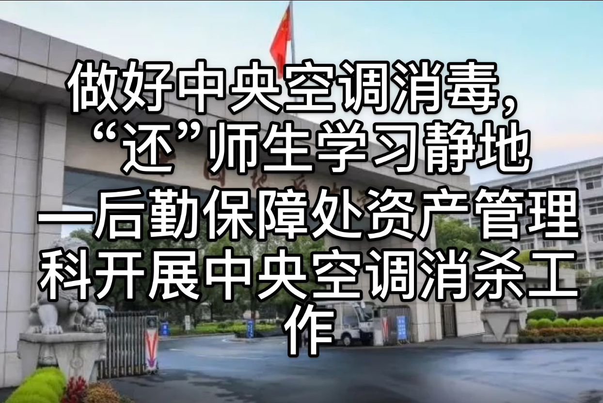 根据学校防疫工作及开学前工作需要,在确保其他工作正常运转的前提下,物业服务中心积极配合资产管理科集中对教学综合楼、珠宝楼、图书馆、博物馆等楼宇的中央空调进行全面彻底的清洗消毒。截至5月26日,中央空调消杀工作已圆满完成,共清洗消毒2140余台。在空调消杀之前,物业服务中心提前谋划、周密安排,根据
