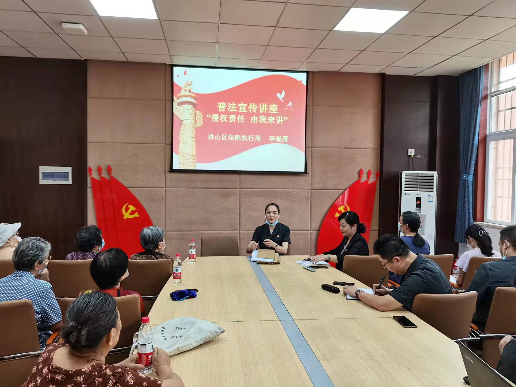 7月7日上午,关山街地大社区党总支联合洪山区法院执行局党支部开展了以“学省党代会精神、做新时代先锋”为主题的“支部主题党日”活动。洪山区法院执行局支部党员、社区党员、积极分子共约50人齐聚一堂,共庆建党101周年。活动在重温入党誓词、诵读党章的庄严气氛中拉开帷幕,与会人员集中学习了省第十二次党代