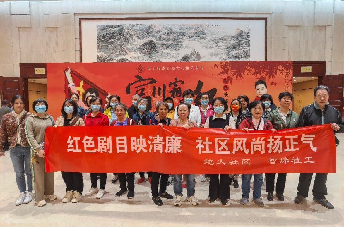 为推进清廉社区建设,加强社区党员廉洁教育和爱国主义教育,营造风清气正的社区环境,10月22日晚,地大社区组织社区党员20余人前往洪山礼堂,观看大型阳新采茶戏《富川霜叶红》。阳新采茶戏是国家级非物质文化遗产保护项目,也是湖北省“十大稀有”剧种之一。《富川霜叶红》是阳新县采茶戏传承中心“聚焦重大题材