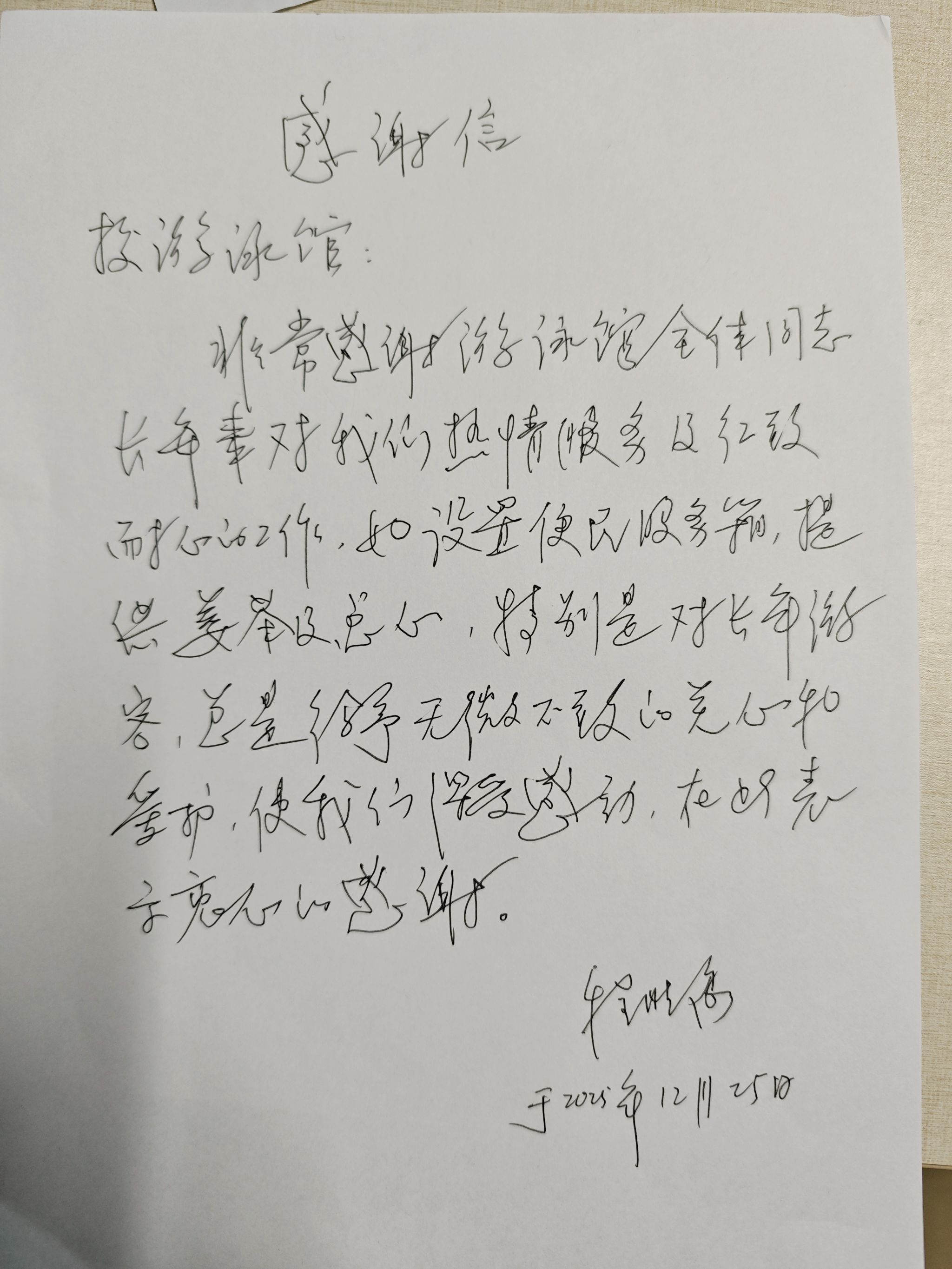 感谢信里暖流涌,泳馆服务映真情