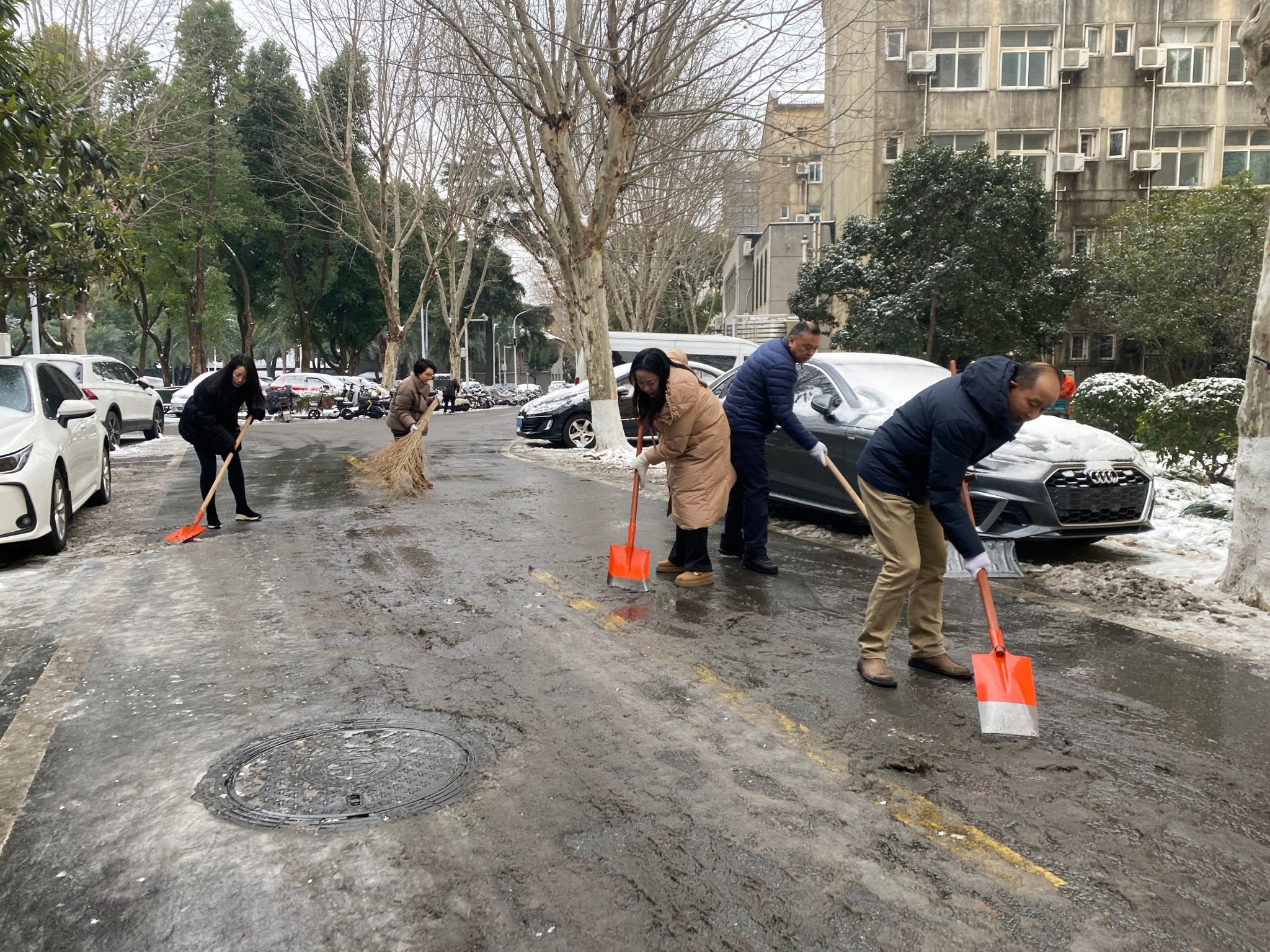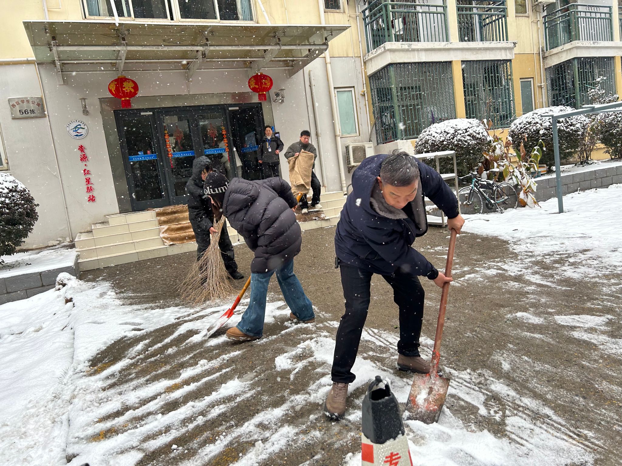 雪映担当 迎寒而上—物业服务中心扫雪除冰全力保障师生安全出行