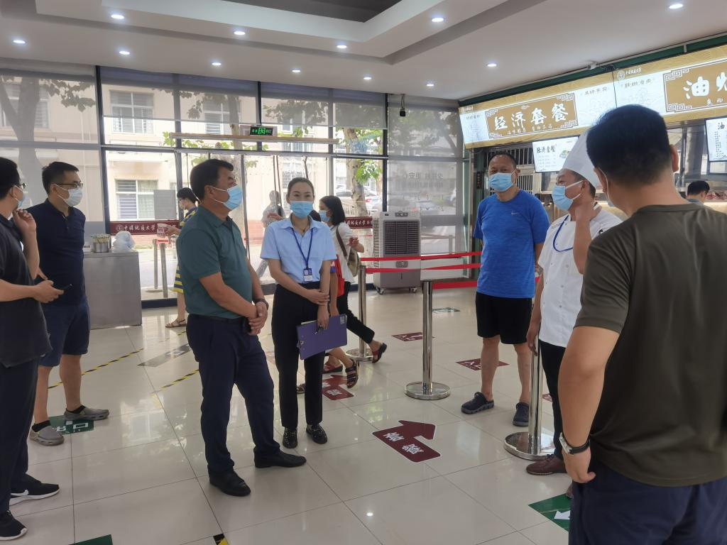 8月10日上午,后勤保障处处长王文起、副处长刘清华、贺亚锋等领导检查了后勤各部门暑期工作情况。王文起一行先后到东苑食堂检查假期伙食供应情况,到东区超市检查生活物资供应情况,到接待服务中心检查震旦园后厨改造工程进度,到劳动服务中心检查东区集贸市场改造进度,到西区51栋、62栋学生公寓检查新生宿