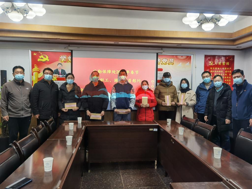 为表达后勤党委、后勤保障处、后勤分工会对困难党员、困难职工的关怀,后勤保障处于2021年2月5日上午开展困难职工、困难党员慰问。全体处领导参加慰问活动,分别由党委书记蔡楚元和处长王文起分两组对全处5名困难党员、38名困难职工进行现场慰问。春节期间开展困难职工、困难党员慰问是后勤保障处、后勤分工会的