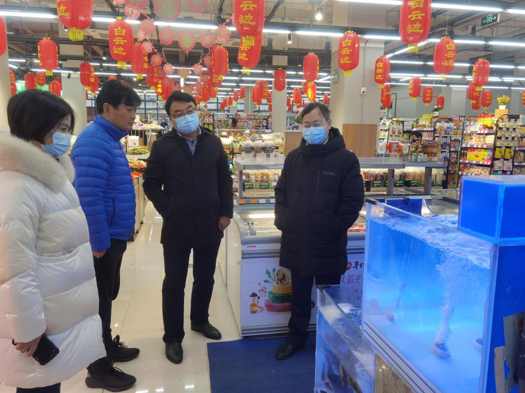 2月5日上午,副校长刘杰、校长助理周爱国到东区生活服务中心检查中百超市开业筹备及疫情防控工作。刘杰详细了解了超市商品供应、产品布局、价格质量等情况,并对超市装修、门店卫生等工作提出指导意见。他要求后勤保障处要做好超市经营监管,在保障春节商品供应和提升服务质量上下功夫,为在校就地过年的师生提供