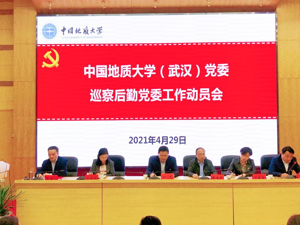 2021年4月29日,中国地质大学(武汉)党委巡察后勤党委工作动员会在南望山校区迎宾楼报告厅召开。副校长刘杰出席会议,学校党委第三巡察组组长张吉军、副组长于晓舟,巡察办副主任高艳丽、干部黄梅娇和巡察组成员马岩、王群星、陈莉、马洪福,后勤保障处全体党员,副科长、中心副主任及以上非党员干部,教代会(