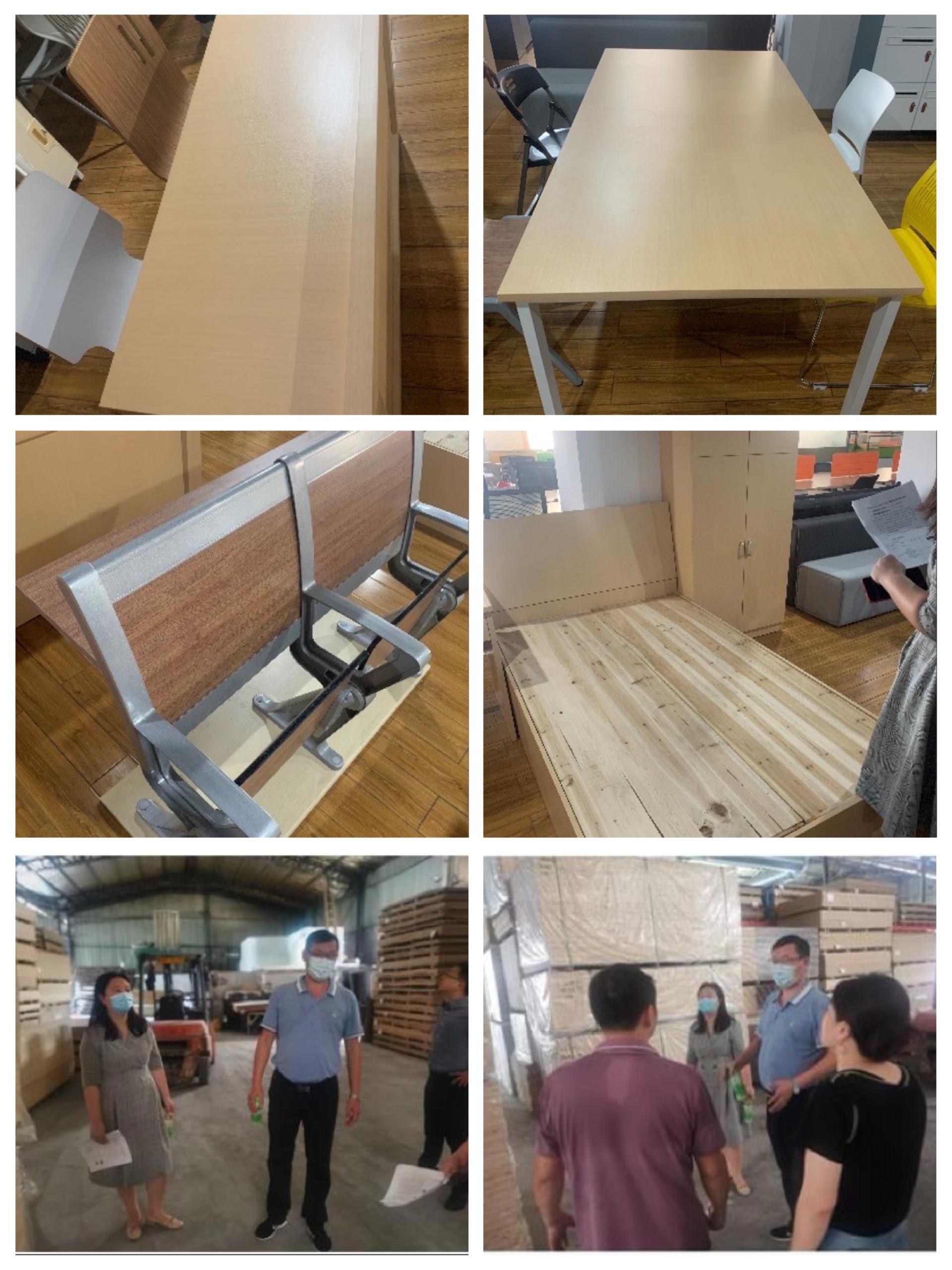为确保产品质量安全、严守产品质量底线, 8月31日后勤保障部到巴东科教基地家具生产厂家对家具样品及原材料等进行了监督检查。此次检查由后勤保障部副部长林芸带队,资产管理科、质量监察科及实习实践基地服务中心等相关部门参加。此次监督检查的目的是确保家具产品质量符合国家相关标准和合同要求。检查人员现场