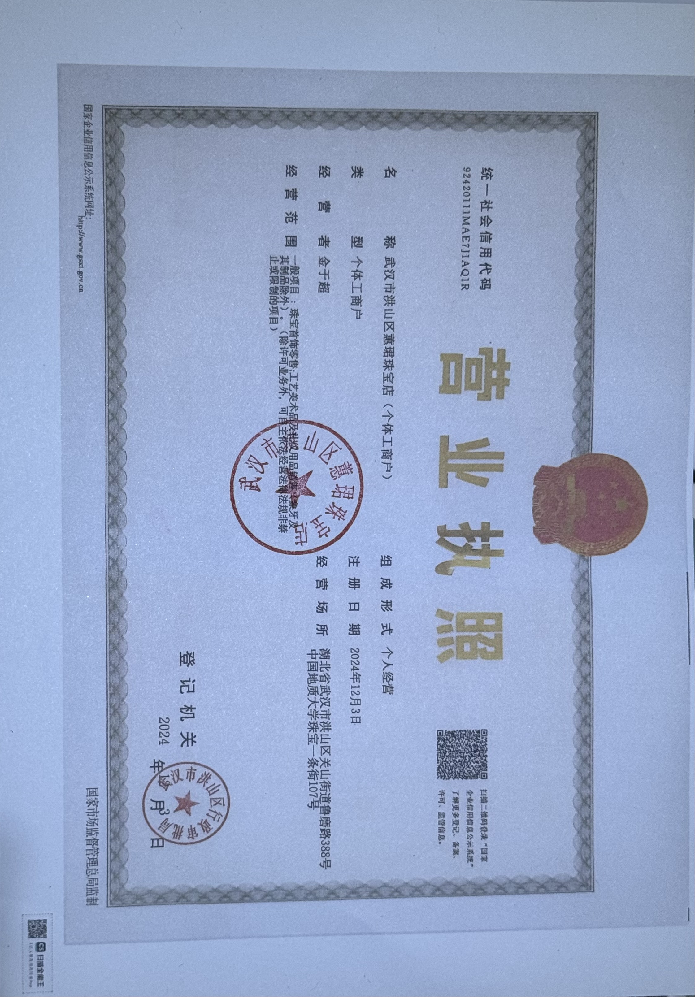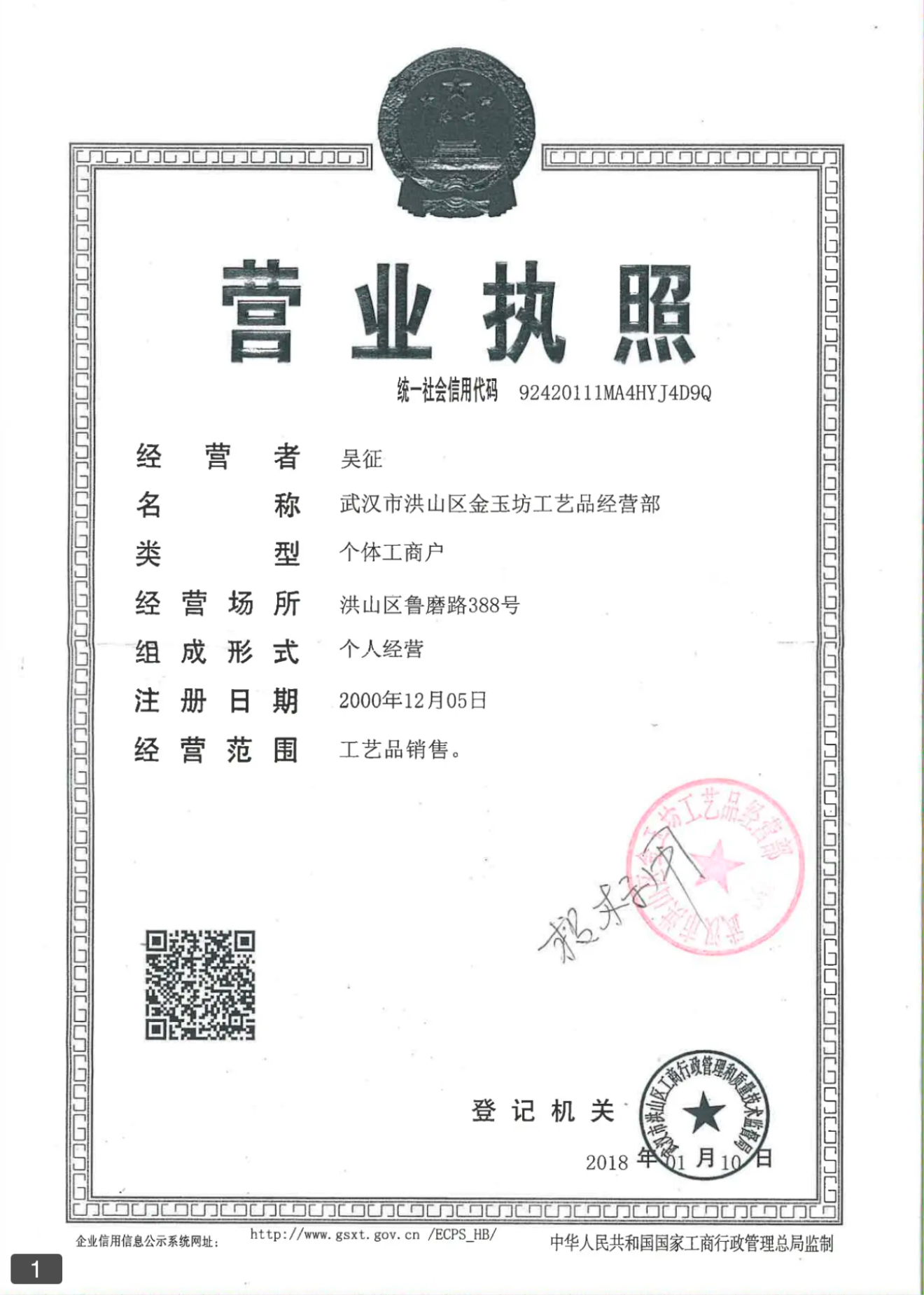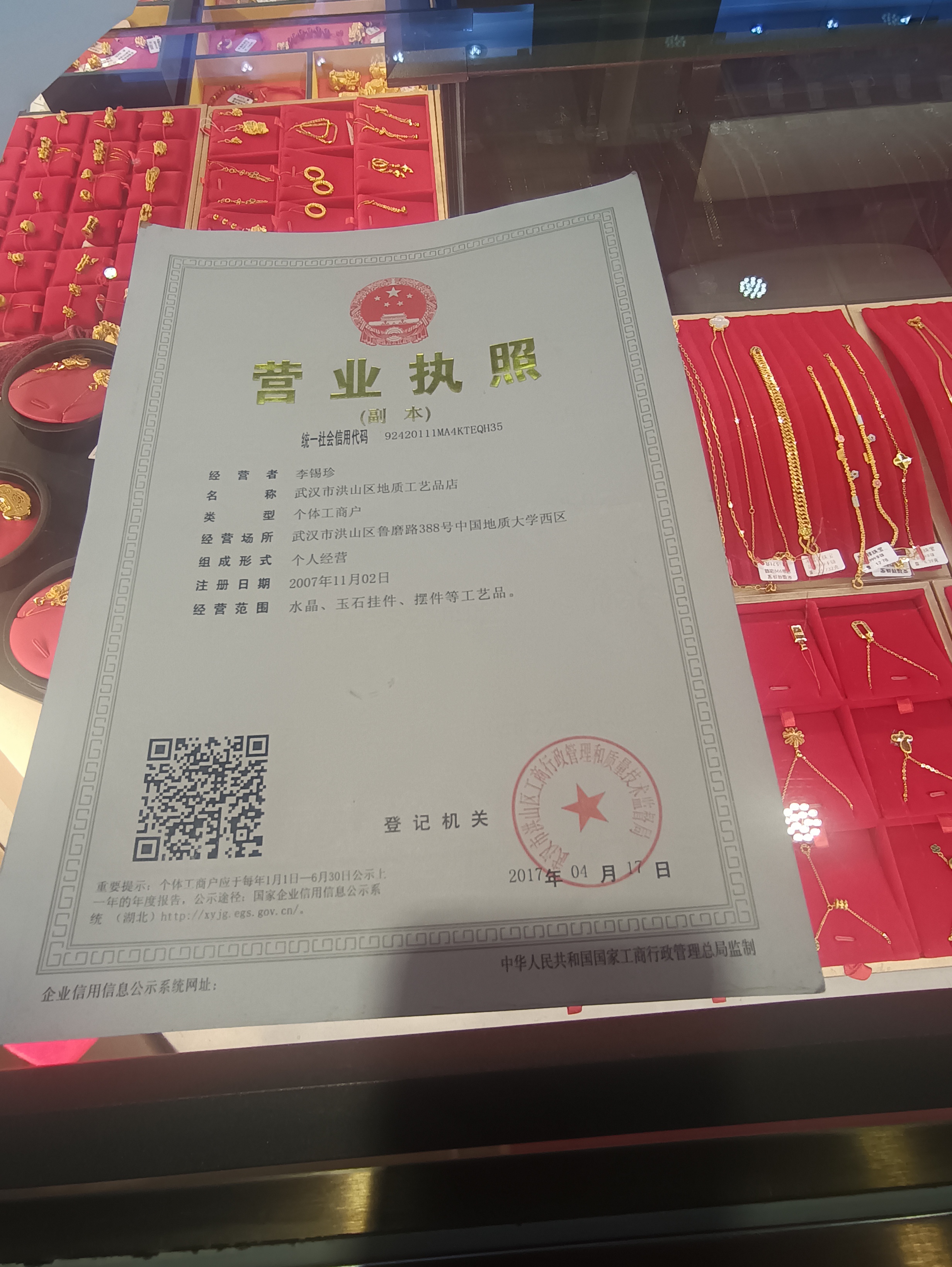 41 | 佳艺珠宝 | 南望山校区西区珠宝一条街110 | 武汉市洪山区佳艺工艺品商店 | 2025.11.21 | |