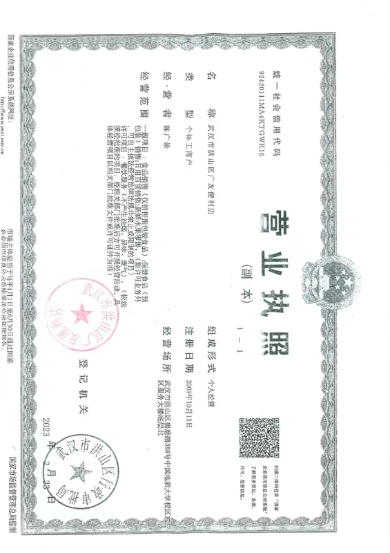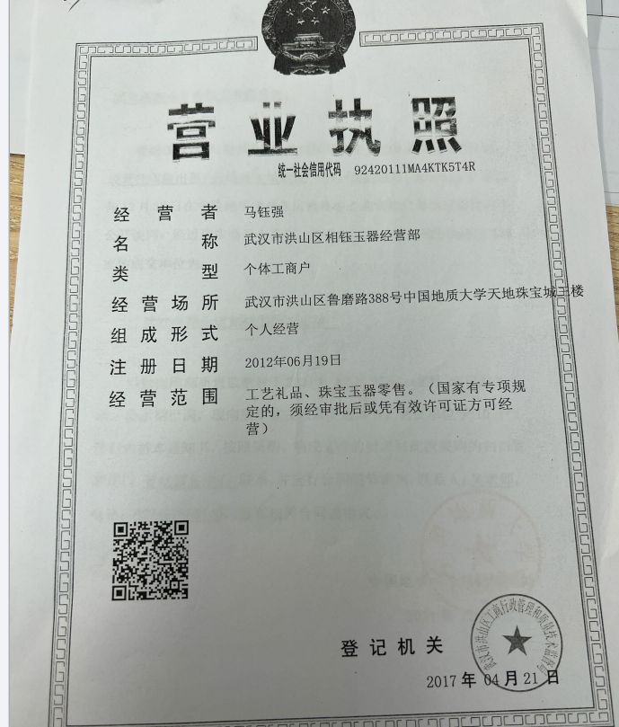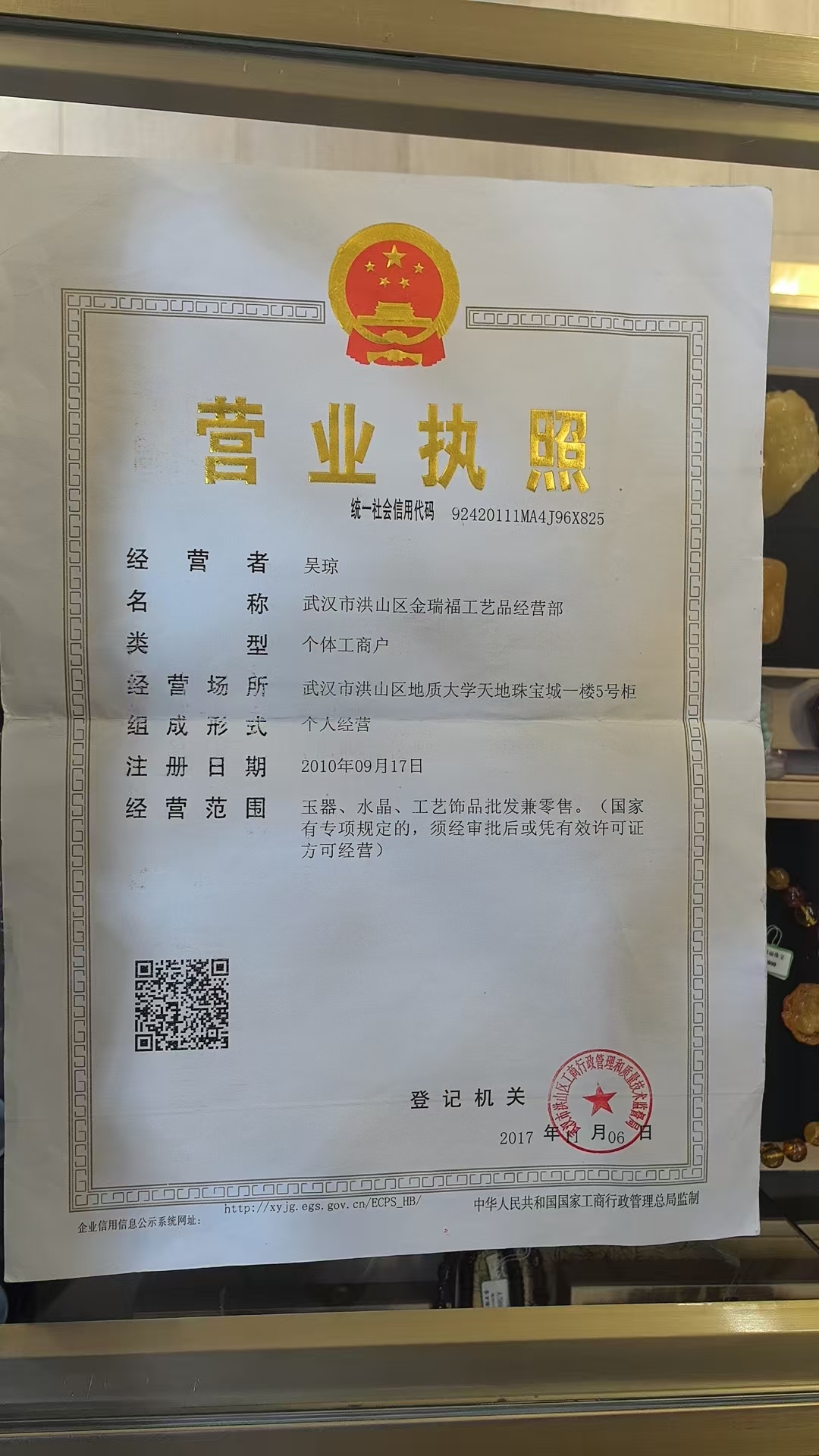 37 | 来福祥 | 南望山校区西区珠宝一条街106 | 武汉市洪山区地质工艺品店 | 2025.11.21 | |