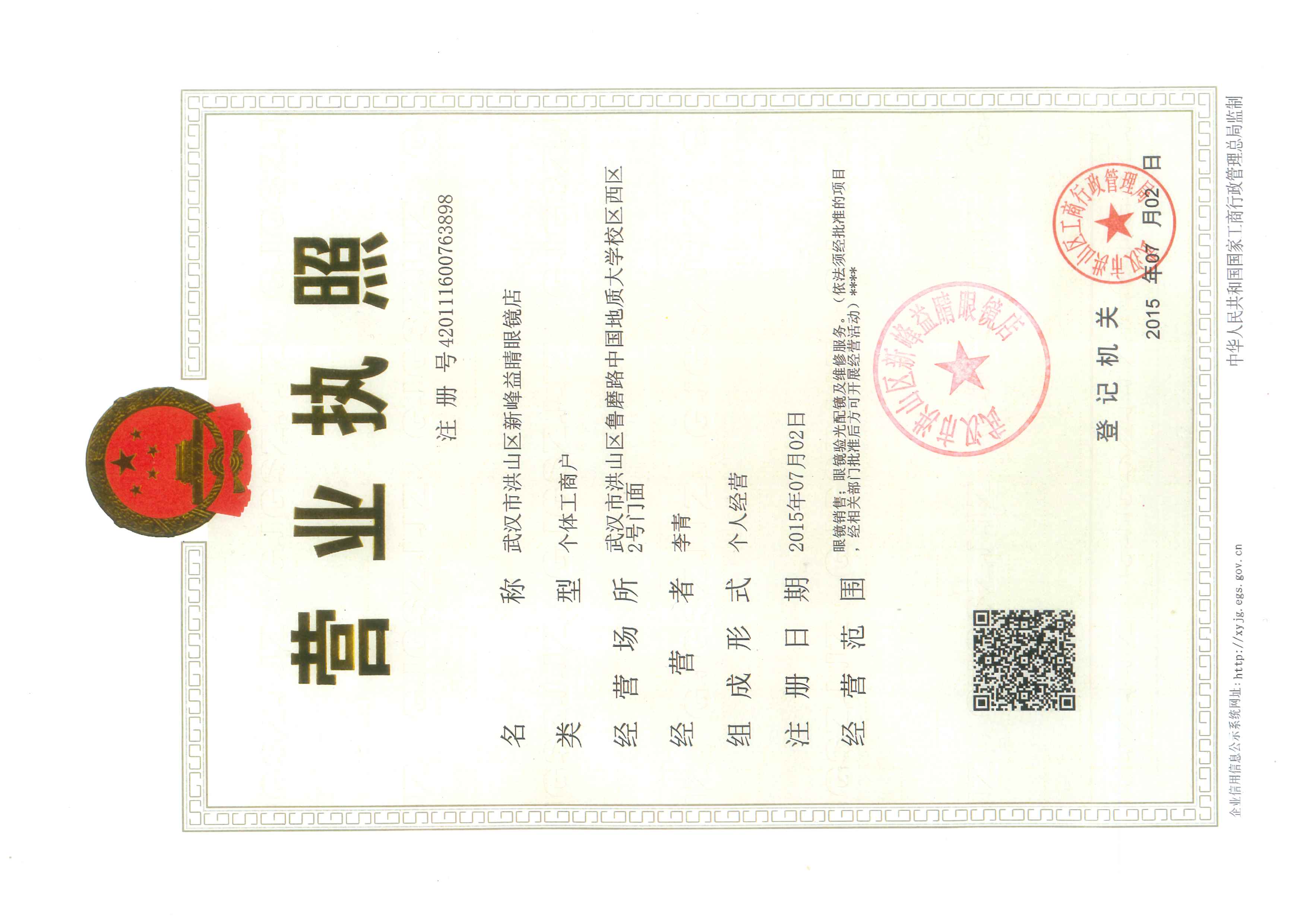 11 | 益睛眼镜 | 南望山校区西区新峰公寓A栋102 | 武汉市洪山区新峰益睛眼镜店 | 2025.11.21 | |