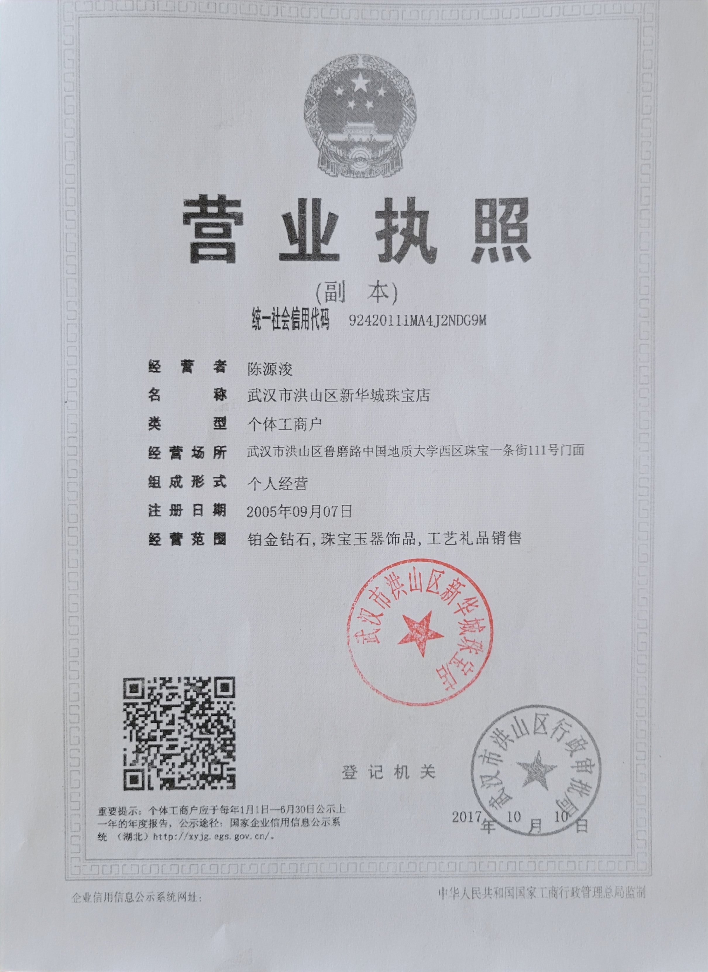 42 | 华城珠宝 | 南望山校区西区珠宝一条街111 | 武汉市洪山区新华城珠宝店 | 2025.11.21 | |