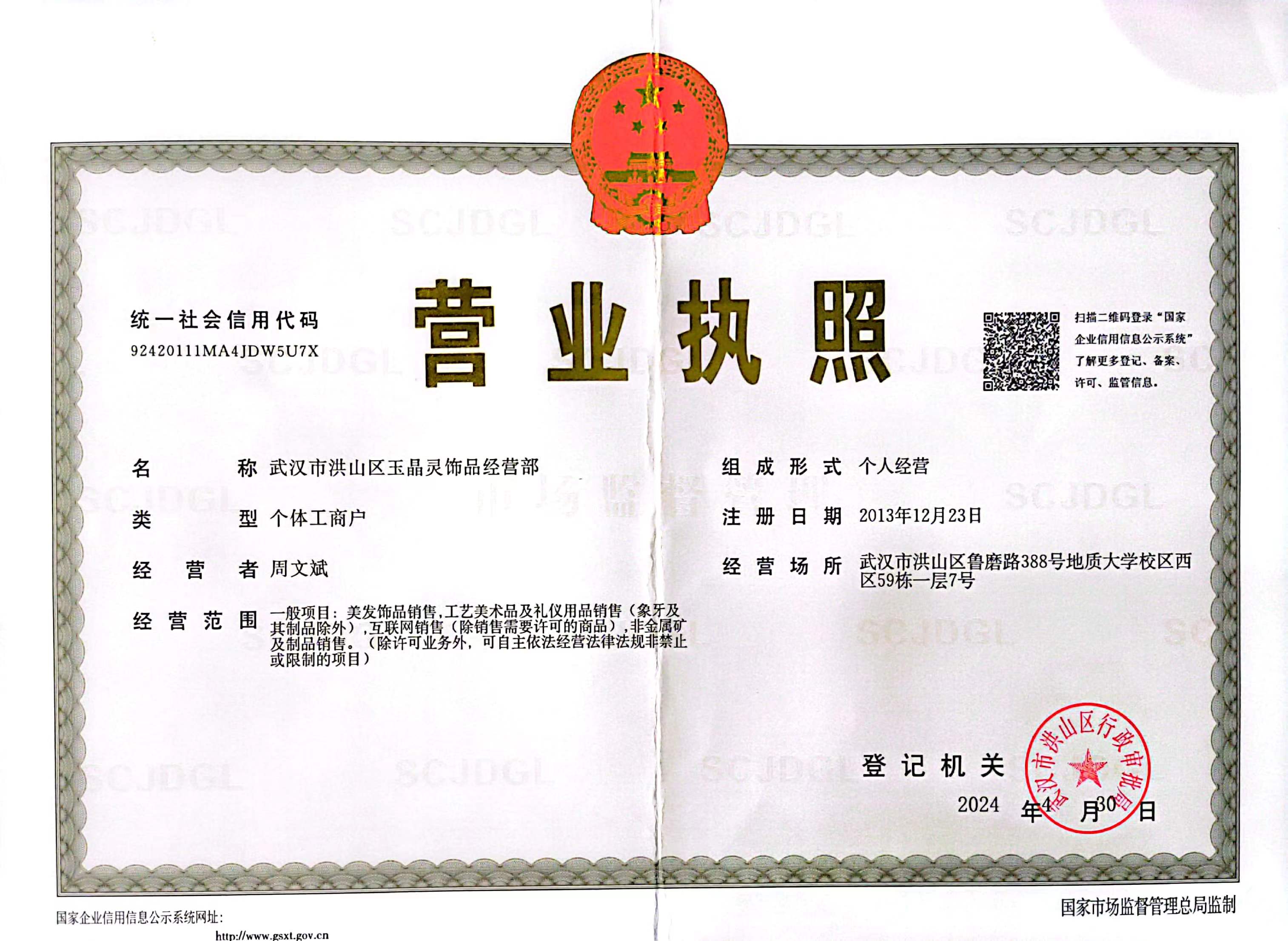 32 | 玉晶灵珠宝文创 | 南望山校区西区学生三食堂105 | 武汉市洪山区玉晶灵饰品经营部 | 2025.11.21 | |