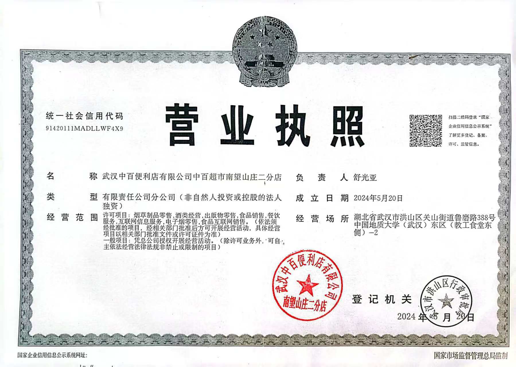 1 | 中百超市南望山庄二分店 | 南望山校区东区教工食堂东侧 | 武汉中百便利店有限公司中百超市南望山庄二分店 | 2025.11.21 | |