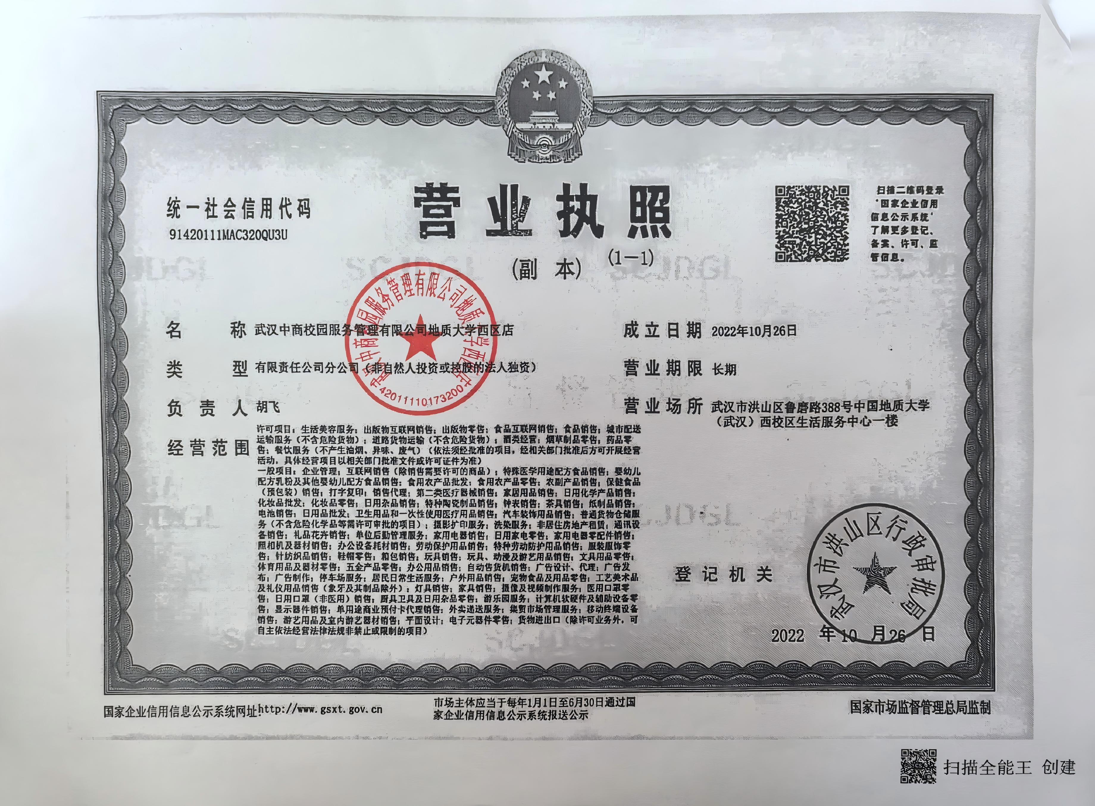 3 | 天猫校园会员店 | 南望山校区北区生活服务中心一楼 | 武汉中商校园服务管理有限公司地质大学北区店 | 2025.11.21 | |